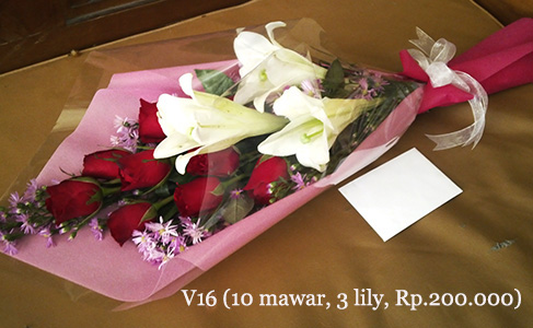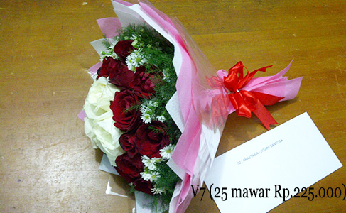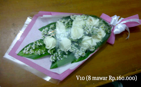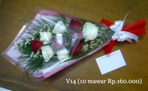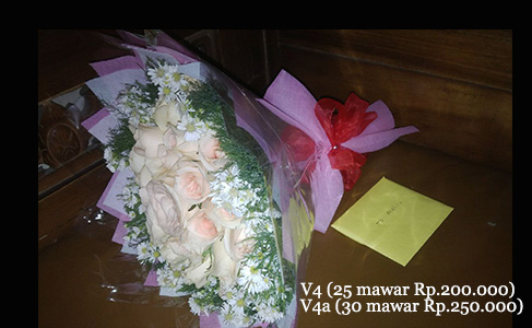 Silahkan pilih hand bouquet dengan menyertakan kodenya. Warna kain dan pita bisa diganti, untuk itu perlu dikonfirmasi ke kami dulu. (Keterangan bunga: bunga mawar lokal, bunga kecil-kecil memakai bunga daisy/pikok, daun memakai fresi, anjuang dan florida)